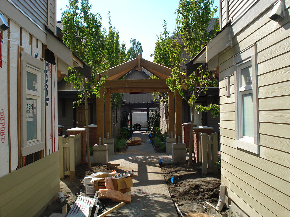 Short description: 42 craftsmen townhomes Richmond BC. New construction. Services provided: rainscreen, James Hardie composite fibre cement plank and board&batten siding installation, door and window trims, custom metal flashing, vinyl soffit installation.